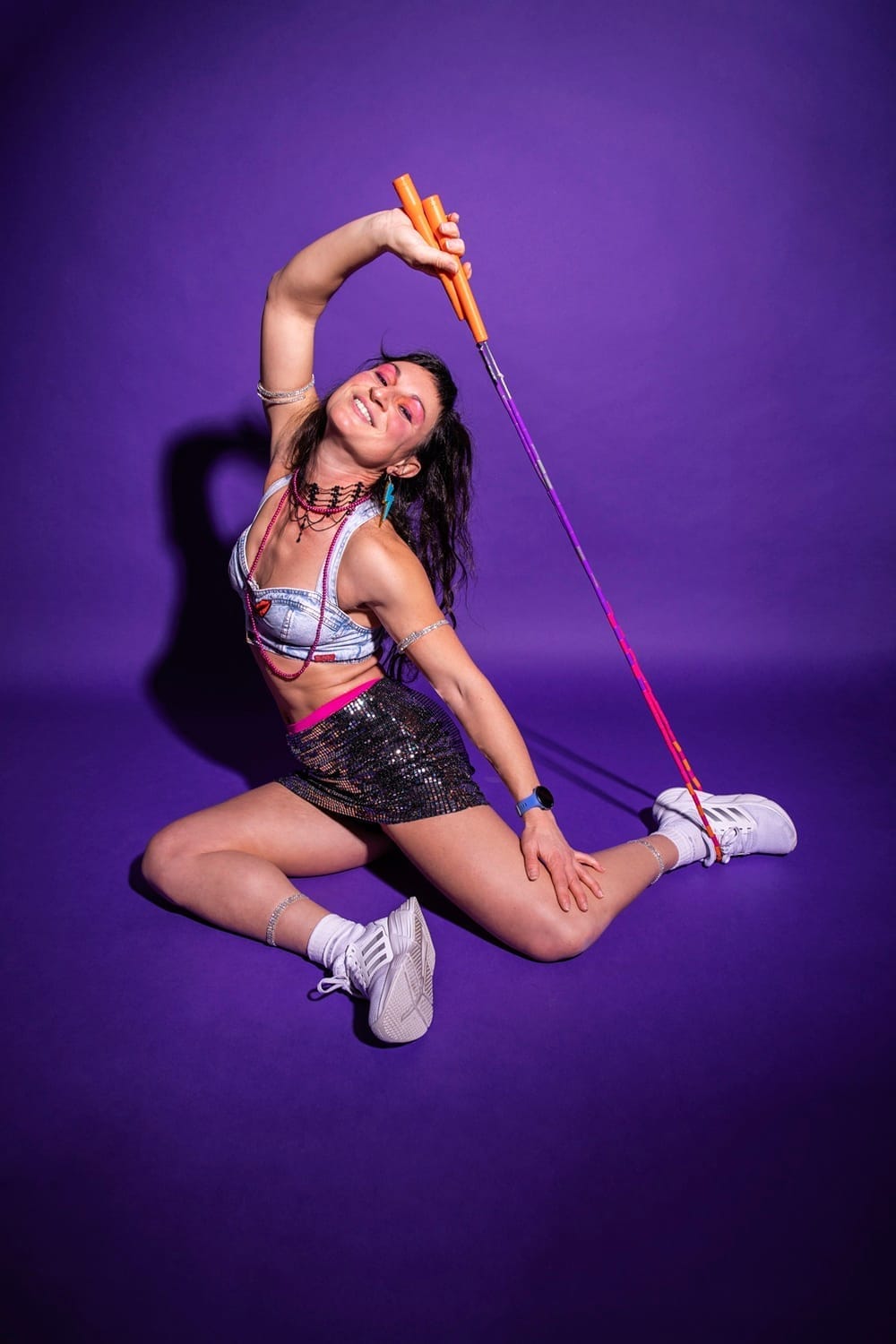 En 2023, je me suis lancée dans l’effeuillage burlesque avec ma corde à sauter — un univers où l’élégance rencontre la technique et le fun.